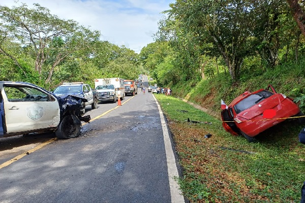 Según información preliminar, en el accidente están involucrados una patrulla de la Policía Nacional y un auto tipo sedán de color rojo, los cuales, aparentemente, colisionaron de forma frontal.