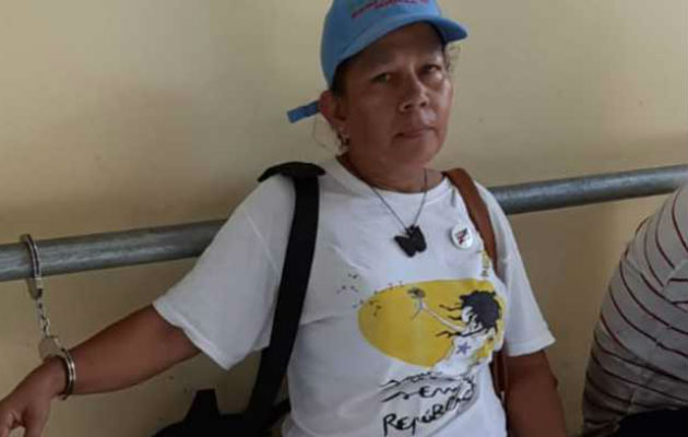 Ligia Arreaga, esposada en la estación de policía de Puerto Armuelles. /Foto Internet