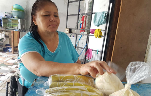 Con esta actividad que ha realizado por 40 años, Eldis Broce, madre de tres hijos, todos adultos, ha sacado adelante a su familia, a pesar de estar atada a una silla de ruedas. Su discapacidad, producto de una enfermedad que padece desde hace 7 años, no ha sido impedimento para que trabaje todos los días junto a su esposo e hijos en el negocio familiar que les permite el sustento diario.