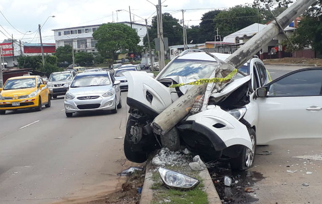 Un vehiculo colisionó la tarde de este martes, contra un poste de tendido eléctrico, ubicado en una isleta en la vía Interamericana, en el distrito de La Chorrera.