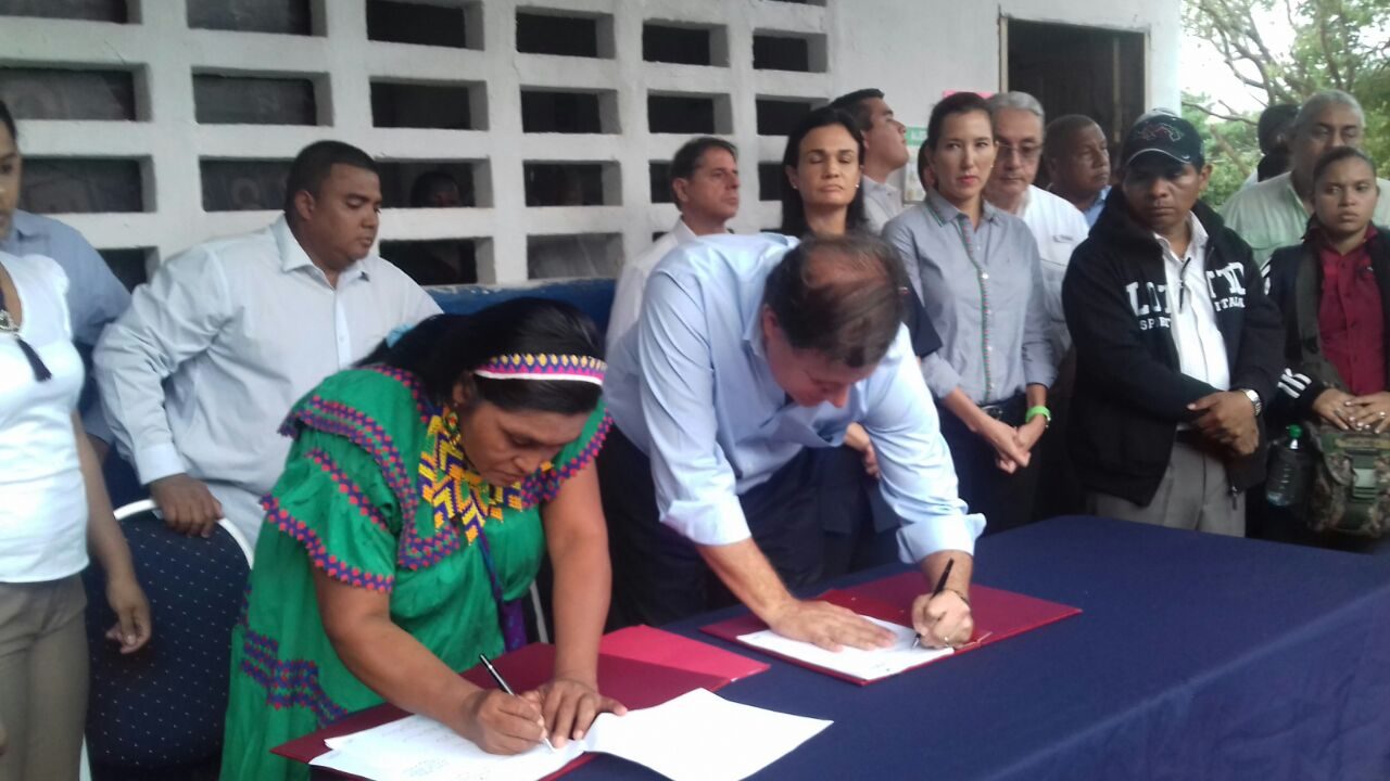 El mencionado acuerdo los firmaron el presidente de la República, Juan Carlos Varela, la cacica general, Silvia Carrera y Nemesio Caces, presidente del congreso general.