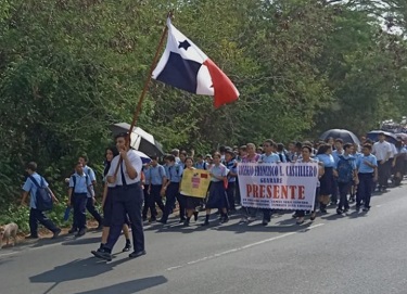 Caminaron desde el colegio hasta el puente que está cerca de la rotonda a la entrada de Guararé. Foto: Thays Domínguez