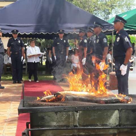 Se trata de la primera cremación de banderas que se lleva a cabo en esta administración gubernamental, la cual a partir de este año será realizado en coordinación con el principal colegio de la región herrerana.
