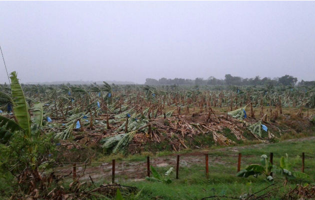 Miles de plantas de banano en plena producción, fueron arrasadas por los fuertes vientos acompañados con lluvias, que azotaron la provincia de Bocas del Toro, la tarde de este miércoles.
