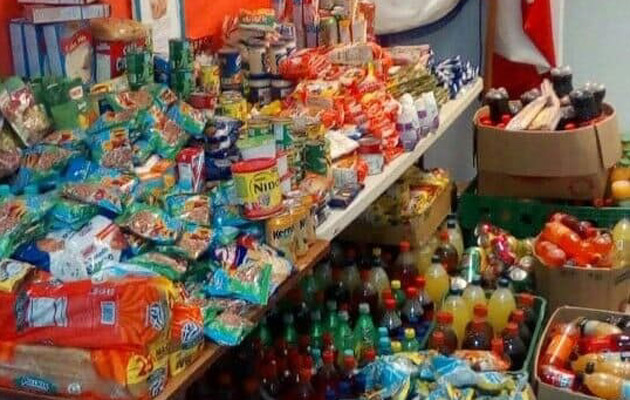 Entre los productos decomisados se encontraban sodas, pan, embutidos, jugos, leche, enlatados inclusive, comida para perros.
