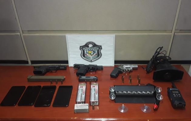 El comisionado, Ulises Salamanca jefe de la Cuarta Zona policial confirmó que, mediante un allanamiento realizado en una residencia en el corregimiento de Chiriquí, ubicaron tres armas de fuego, de las cuales dos eran pistolas calibre 22 y un revolver, además decomisaron municiones, luces, bocinas de escolta, un radio portátil y cuatro celulares.