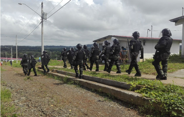 Unidades del Control de Multitudes de la Policía Nacional se mantienen en Loma de Mastranto en La Chorrera.