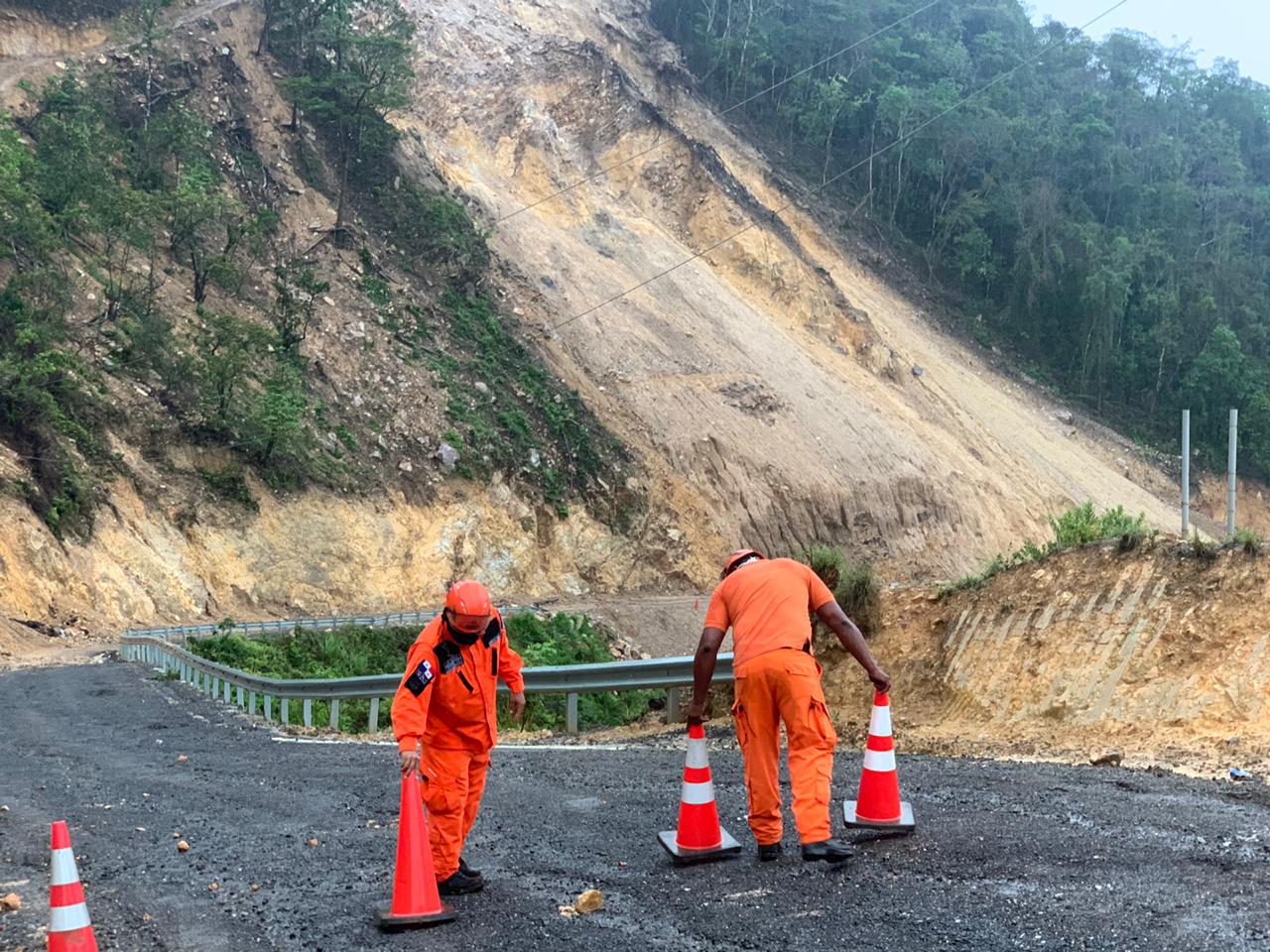 Pará evitar el tráfico vehicular y accidentes por nuevos deslizamiento de tierra, personal del Sinaproc, colocó conos en la vía como medida de señalización.