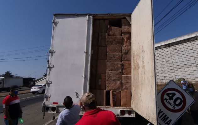 Desde tempranas horas de la mañana, inspectores y funcionarios de Salud, Aduanas, Ministerio Público y la Policía Nacional, abrieron el camión para descargar más de 1,600 cajas de cigarrillos de diversas marcas.