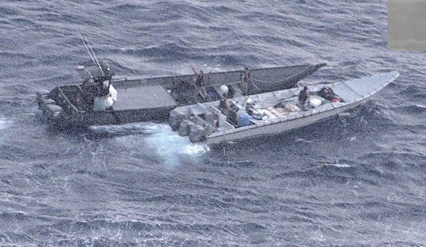 Los estupefacientes y los tripulantes de esta lancha rápida, fueron llevados a la base naval en Sherman.