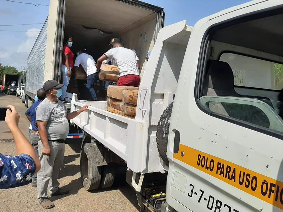 En la primera fase de entrega ocurrida el pasado 27 de abril, ambos distritos recibieron unas 12,968 bolsas de comida, donde además se repartieran 4 mil piñas, 12 mil bolsas de cebolla y 4 mil pollos.