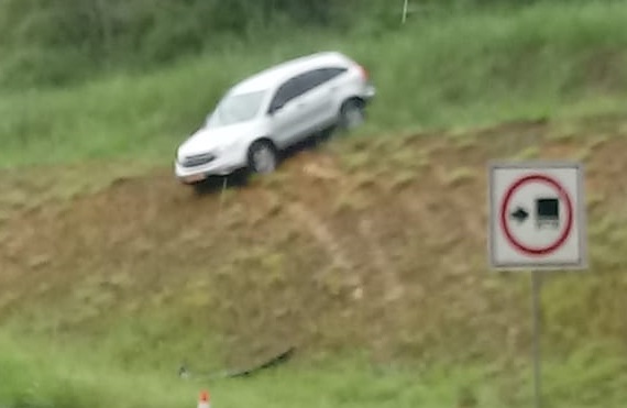 La camioneta quedó encima de una loma, mientras la patrulla quedó del lado contrario de la vía, con daños, principalmente, en la parte trasera.Foto/Diómedes Sánchez