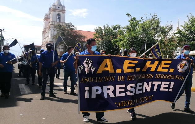 Que se ponga un freno al incremento del combustible, y se cumpla con el nombramiento de personal en los planteles educativos, reclamaron docentes de la provincia de Herrera en una manifestación pacífica, el 1 de mayo.