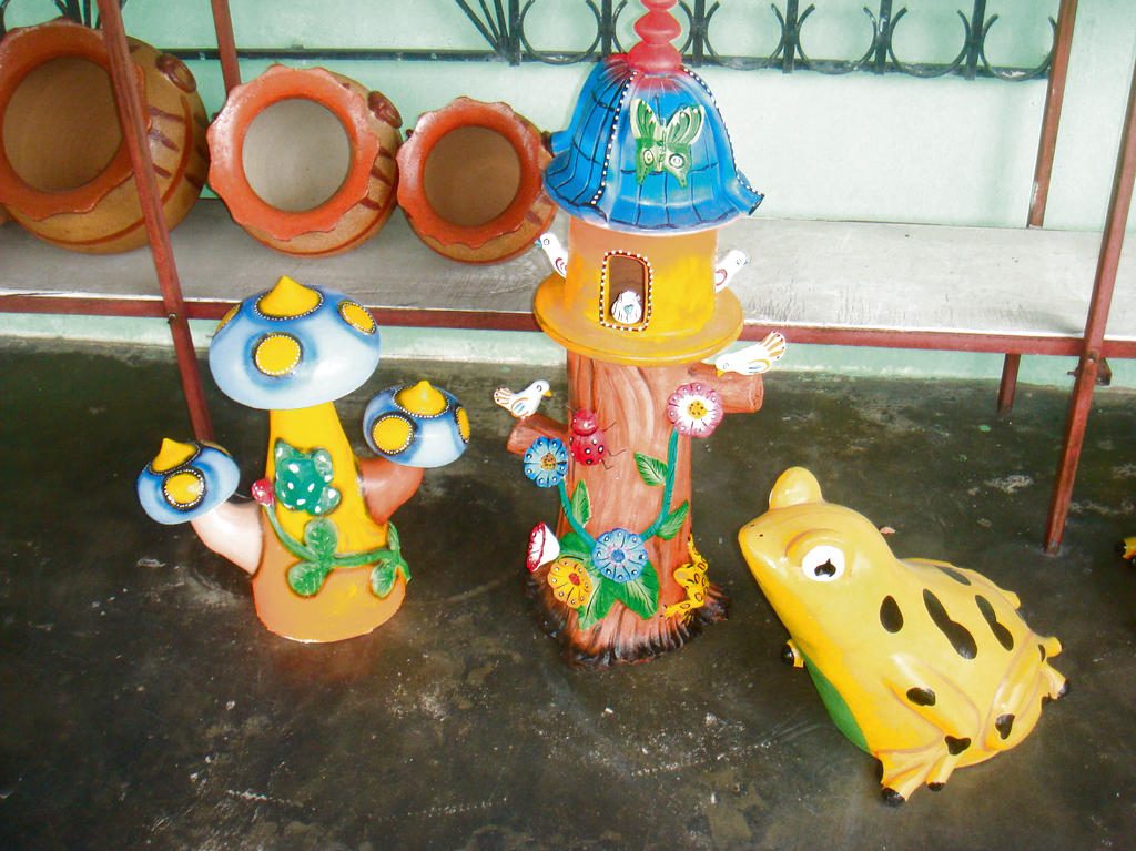 Esta empresa cuenta con cinco trabajadores que hacen con el barro diversas figuras; ya sea de pájaros, mariposas, pericos, sol y platos.