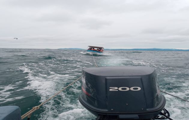 Se informó que al momento de ser rescatados por los aeronavales, la embarcación de nombre “Minibom” se encontraba sin combustible al sur de Isla Taboga, por lo que los uniformados procedieron a remolcarla.