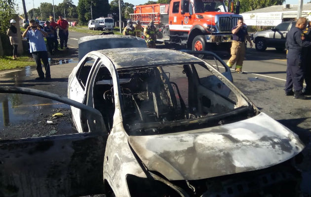 El hecho se registró cuando el conductor del vehículo de transporte selectivo (taxi) viajaba hacia el distrito de Dolega, escuchó el sonido de un golpe en la parte trasera y en cosas de segundo el vehículo rodando quedo en llamas logrando tirarse del auto para salvar su vida.