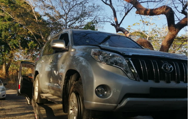 Una camioneta color gris con matrícula CG1170 con cuatro impactos de bala, fue dejado abandonada este viernes en un carretera que conduce hacia playa La Ermita en el distrito de San Carlos.
