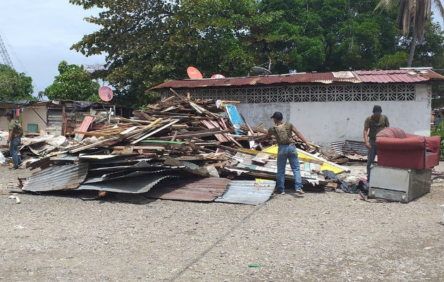 Esta semana, cadetes del Servicio Aeronaval (Senan) y personal del Ministerio de Vivienda y Ordenamiento Territorial (Miviot), demolieron algunas de las viviendas de zinc, madera y cartón, que existe en el sector.