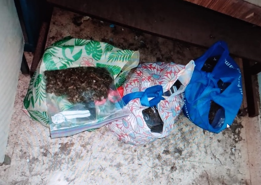 Al menos 64 bolsas transparentes de mediano tamaño con hierba seca, que se presume es marihuana, fueron encontradas por las unidades antidrogas.