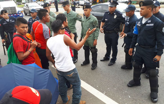 Los moradores de las comunidades de Cerro Patena, Camarón Arriba y Ñamnoní ubicadas en el distrito de Besikó en la comarca Ngäbe-Buglé, se enfrentaron con unidades del Control de Multitudes de la Policía Nacional, quienes los desalojaron de los cuatro paños de la vía Interamericana a la altura de San Juan en el distrito de San Lorenzo, provincia de Chiriquí.