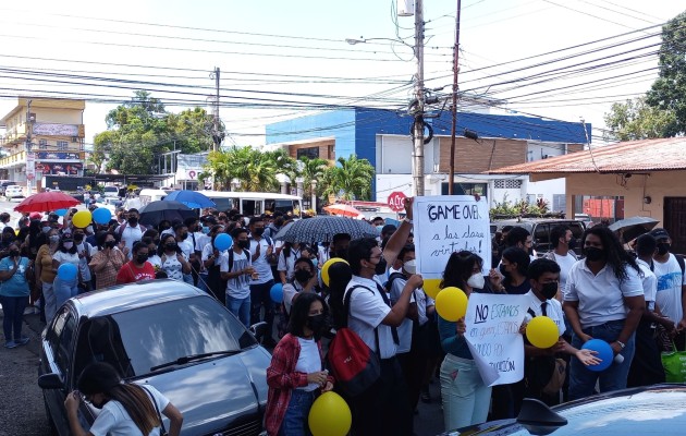 Estudiantes de tres escuelas secundarias del distrito de La Chorrera, provincia de Panamá Oeste, marcharon este viernes exigiendo la culminación de los trabajos de reparación y el retorno a clases presenciales.