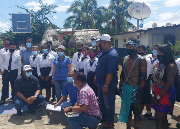 La titular del Ministerio de Educación (Meduca), Maruja Gorday de Villalobos, acompañada de altos funcionarios de la entidad, se mantiene reunida este martes con autoridades tradicionales de la comarca Emberá-Wounaan en la provincia del Darién.
