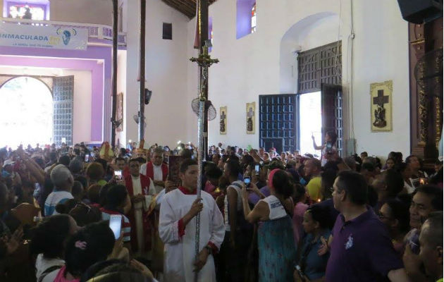 La Iglesia se quedó pequeña para los miles de fieles que querían participar de la misa de las 6 de la tarde oficiada por Monseñor Manuel Ochogavía, Obispo de Colón y Kuna Yala.