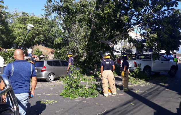 Las fuertes brisas que se registran en la provincia de Chiriquí ocasionaron que un árbol de gran tamaño cayera este martes sobre varios vehículos que estaba estacionados a un costado del Parque Miguel de Cervantes Saavedra en la ciudad de David.