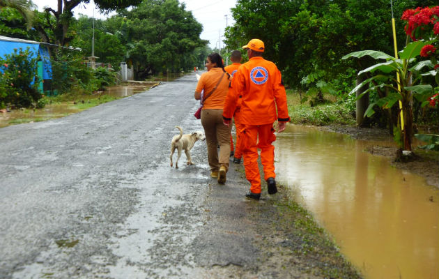 Miembros del Sinaproc, recorren las áreas afectadas por las inundaciones. Foto/Thays Domínguez