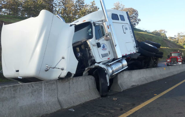 El conductor de un camión articulado perdió el control del equipo rodante este jueves en horas de la madrugada, ocasionando que se volcara y colisionara con el muro de contención del centro de la vía Interamericana a la altura de la comunidad de Bella Vista, en el distrito de Tolé, provincia de Chiriquí.