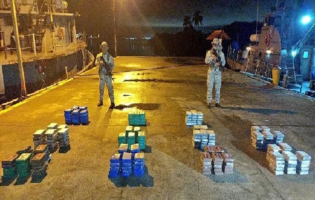 Luego de ser intervenida, la nave identificada como una lancha rápida tipo Go Fast, junto a los detenidos y la droga, fueron trasladados hacia la base naval Cristóbal Colón, donde finalmente se contaron los estupefacientes.