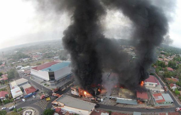 Las llamas se propagaron por toda la manzana, alcanzando unos 13 locales, entre grandes y pequeños de la avenida central.