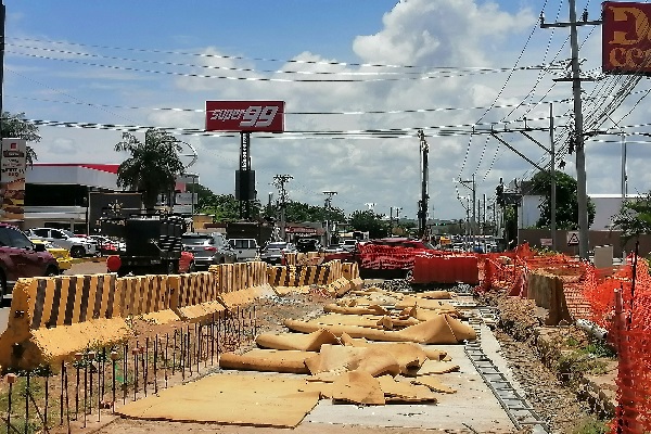 Al transitar por la vía hacia Los Santos, quienes viene del área de Chitré se encuentran de frente con grandes máquinas, cables y tuberías, señal de las obras qué ahí se realizan, por lo que la empresa ha dispuesto de trabajadores para guiar a los conductores y evitar accidentes.