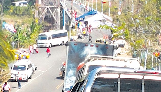 - A eso de las 5:30 p.m., tras el acuerdo con los invasores, llegaron al área del puente los afectados por perdigones durante los enfrentamientos de 2010, quienes exigen una ley especial que les permita ser pensionados de por vida y que esas pensiones sean de carácter hereditario a sus familiares.