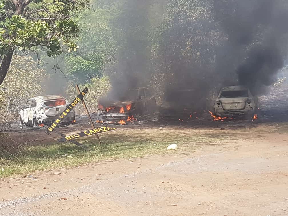 Investigan si el fuego que acabó con cuatro automóviles en río Cañazas fue intencional