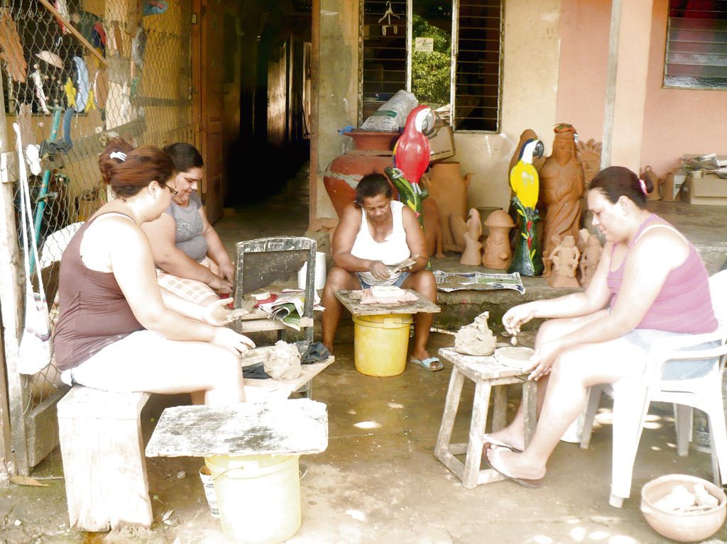 Yelania de Martínez, Yenifer Durán, Yenisel Durán y Mariela Pérez están agremiadas en la producción de artesanías de barro.