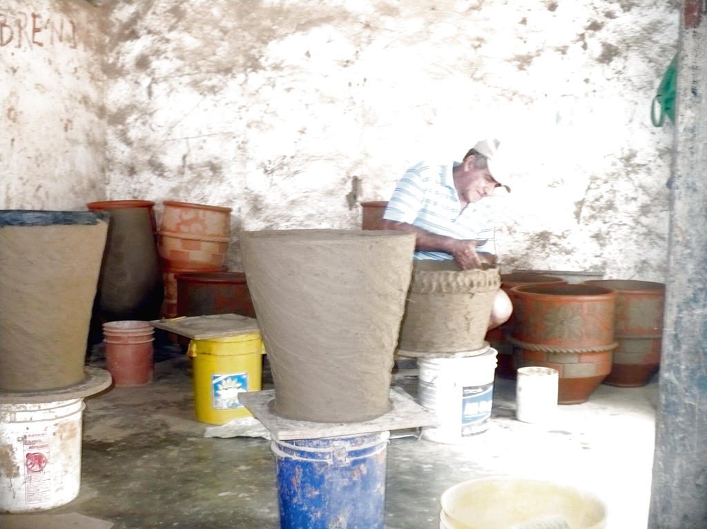 Esteban Girón, un veterano con 30 años en la práctica del barro y confección de piezas grandes, trabaja por encargo. Denunció que no está conforme con lo que pasa con este negocio.