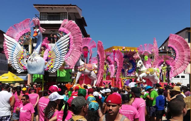 Marianelis Vargas Gonzalez, soberana de Calle Arriba y Thalia Mabel Villalaz Dominguez, de Calle Abajo, realizaron el recorrido tradicional por el parque Porras, en sus coloridos carros alegóricos, en medio de gran cantidad de público.