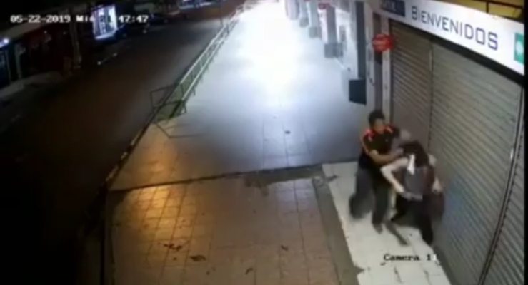 La cámara de video de un establecimiento comercial captó justo el momento en el que un delincuente se acerca a un joven lo golpea y logra robarle el teléfono celular en el área comercial de la ciudad de David en la provincia de Chiriquí.