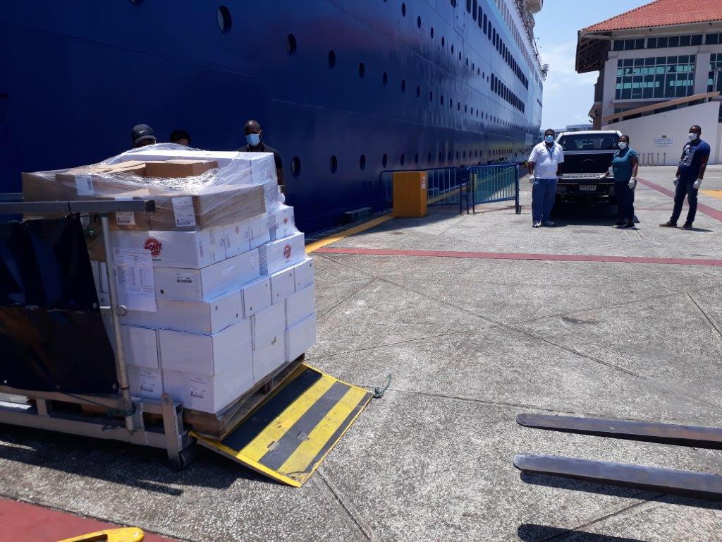 El barco está atracado en Colón 2000, de donde se descargó la mercancía para pasarle la responsabilidad de la gobernación, para su distribución.