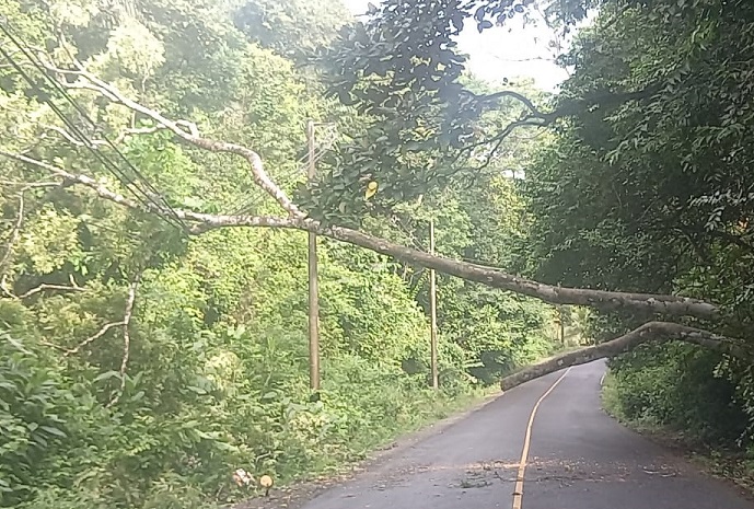 La lluvia acompañada de un fuerte viento, logró que varios árboles cedieran y cayeran sobre el tendido eléctrico en la vía entre el área conocida como "Batería 35" al corregimiento de Achiote, distrito de Chagres.