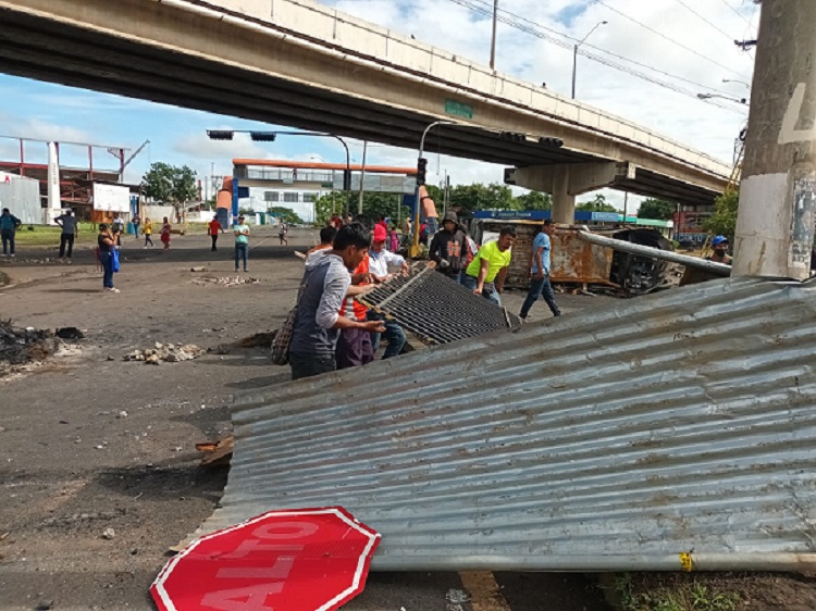 En estas barricadas habían colocado hojas de zinc, hierros oxidados y tanques, entre otros objetos, imposibilitando el paso vehicular.