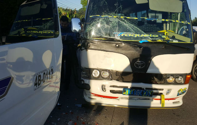 Un accidente registrado la mañana de este miércoles dejó más de 10 personas heridas producto del choque entre dos buses en el sector del cruce de Bágala en el distrito de Boquerón, provincia de Chiriquí. Según los primeros informes, el hecho se registró cuando los dos buses tipo coaster de la ruta David-Frontera y David-Cerro Punta al parecer trataban de hacer regatas para ganarse los pasajeros a los largo de la ruta cuando colisionaron, dejando varios heridos. Una vez se da el hecho ambulancias de los bomberos, del Sistema Único de Manejo de Emergencias (Sume 9-1-1) y de otras dependencias de salud, acudieron al llamado de las personas que resultaron heridas producto del impacto, trasladándolas a diferentes centros médicos como el hospital regional Rafael Hernández, entre otros. Se pudo conocer que los heridos no fueron de gravedad, solo algunas lesiones productos del choque de los dos vehículos que viajaban con dirección a la ciudad de David. Al lugar se presentaron unidades de operaciones del tránsito de la provincia de Chiriquí, quienes levantaron un informe de lo sucedido y procedieron a iniciar las investigaciones del hecho para deslindar responsabilidades. VEA TAMBIÉN: Regata de bus pirata deja más de 15 heridos en la Vía Tocumen El tema de las regatas de buses en la provincia de Chiriquí, en los últimos tres meses se registran con mayor frecuencia, muestra de eso son los videos que circulan en redes sociales de los propios pasajeros cuando filman a los conductores tratando de exceder la velocidad para ganar a los pasajeros que se mantienen en la vía. Principalmente, en la vía Interamericana que va al sector de la frontera de Paso canoas es donde se da con mayor frecuencia el exceso de velocidad por parte de los conductores de estos vehículos de transporte de pasajeros. Según fuentes cercanas al hecho los buses viajaban con varios pasajeros debido a que el accidente se dio pasada las 8:00 de la mañana cuando una gran cantidad de personas se dirigen a la ciudad de David. La colisión entre los dos vehículos ocasionó un enorme tranque vehicular y la presencia de varias unidades del tránsito para poner orden debidos a la desesperación de los conductores. El tema de los accidentes de tránsito en la provincia de Chiriquí se intensifican, las víctimas que se han registrado en las calles chiricanas, han dejado un saldo de 72 muertos en lo que va del año, superando la cifra de las víctimas registradas en el 2016, que finalizó con 67 personas muertas. Las autoridades del tránsito en Chiriquí, piden a la población respetar las leyes del tránsito a la hora de conducir, ya que el tema de exceso de velocidad, conductores bajo efectos del alcohol son las principales causas de los hechos registrados. VEA TAMBIÉN: A más de 25 ascienden heridos en choque de buses en Penonomé