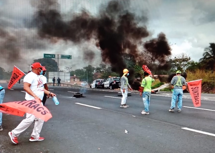 Miembros del Sindicato Único Nacional de Trabajadores de la Construcción y Similares (Suntracs) bloquearon hoy jueves por varias horas la autopista Arraiján – La Chorrera.
