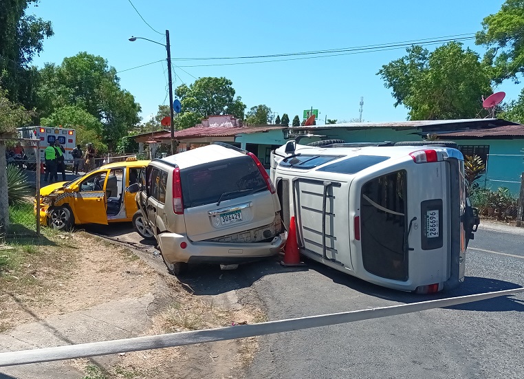 En la triple colisión están involucrados un taxi, dos camionetas cuyos conductores también quedaron con golpes y heridas.
