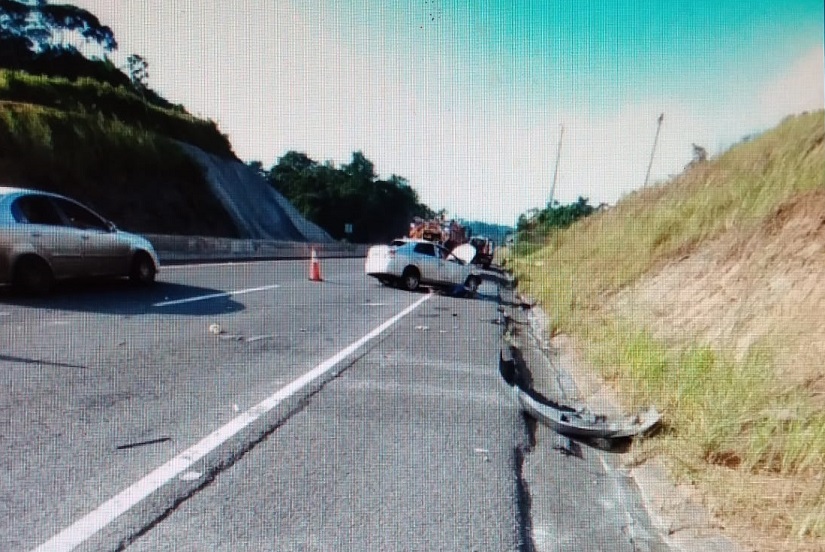Del impacto, ambas personas salieron del vehículo y quedaron tirados en la autopista.