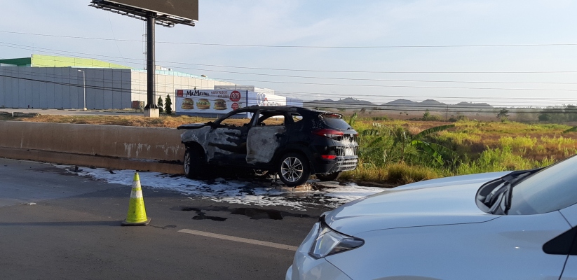 Por el fuerte impacto el vehículo se incendió, por lo que fue necesario que al lugar se presentaran unidades del Cuerpo de Bomberos de Santiago.