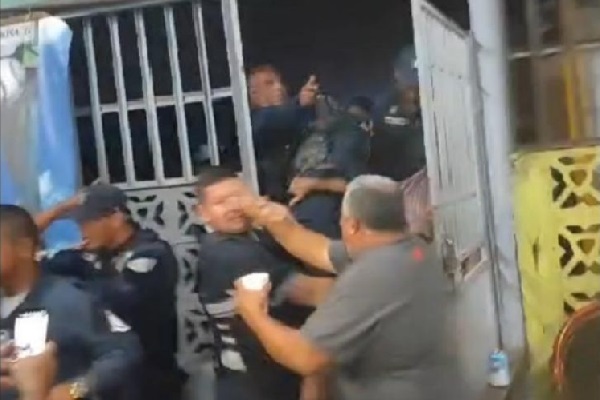 Se conoció que, paralelamente, algunas personas que estaban en el lugar arrojaron sillas, mesas y otros objetos contundentes contra los uniformados.
