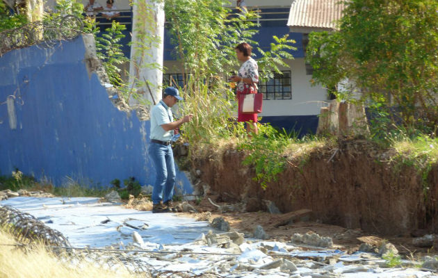 Un equipo del Sistema Nacional de Protección Civil y del Ministerio de Educación, recorrió las instalaciones para evaluar la condición del muro.