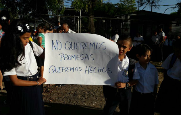 Con candado puesto amaneció este lunes la escuela primaria de La Colorada, en la provincia de Los Santos, y padres de familia reclaman dos docentes, uno de grado y otro de prescolar. Fulvia Pérez, vocera de la comunidad, informó que desde hace dos años esperan el reemplazo de los docentes que se jubilaron y han escuchado rumores de un reajuste en los educadores de materias especiales como Inglés y Educación Física. VEA TAMBIÉN: Inician clases contra viento y marea en escuelas de Coclé Es por ello que los estudiantes y maestros se quedaron por fuera de este centro educativo, porque como medida de protesta cerraron la escuela con candado. Maricruz González, del club de padres de familia, manifestó que hasta tanto no reciban respuestas se mantendrán en paro durante toda la semana. Claribel Ríos, dirigente magisterial, indicó que existe preocupación por el reajuste de maestros especiales, como Inglés y Educación Física, hecho que no fue consultado con la comunidad educativa. “Según el Meduca es por la baja matrícula y este año fue lo contrario hubo mayor cantidad de estudiantes que suman a 114 estudiantes. Además, se mandaron notas al Meduca en Las Tablas y a la supervisora de la Zona 3 y no se ha tenido respuesta”, expresó Ríos. De igual manera informó que a esta escuela les hace falta sillas, el techo de la cancha desde hace más de seis años el Meduca no lo ha puesto y hay problemas de agua. Al lugar se presentó el profesor Rafael Montilla, subdirector regional del Meduca en Los Santos y lamentablemente no se logró un consenso con los padres de familia. Los padres informaron que una comisión asistirá al Meduca en Las Tablas y de no obtener una respuesta por escrito, procederán a protestar en la vía: La Colorada-Guásimo. Esta escuela registra una matrícula de 114 estudiantes y cinco docentes. VEA TAMBIÉN: Año escolar iniciará con piqueteo por reducción de docentes en La Colorada